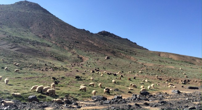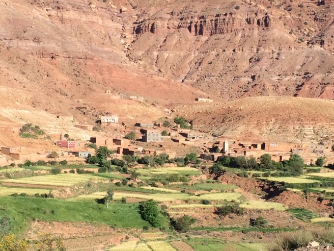 Traffic in Marakesch was a nightmare until I was about 10 kilometers away from Marakesch. Then up and into the Atlas Mountains. Top of the pass was just over 7000 feet and it was comfortably cool. Lots of road work from either a new road or a landslide. You could tell that when it rained, it poured and there was serious flooding that would block the road in dozens of places with rock and water several feet deep. Reminded me of the Baja and Death Valley. Deserts that get heavy rainfall. When it rains, it pours. The road would be impassable and covered with feet of water and rock during rainstorms.