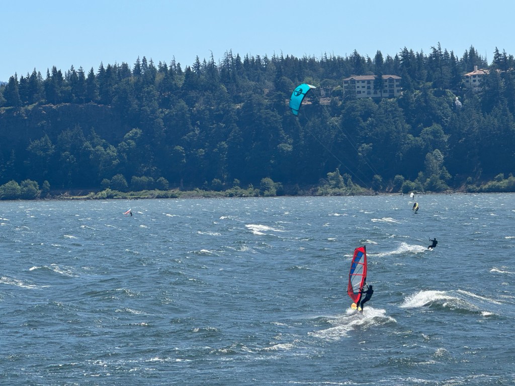 Stopped to watch hundreds of wind surfers north of Hood River, a world class windsurfing destination.