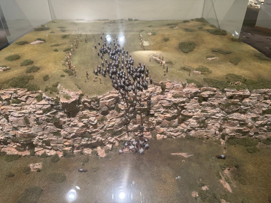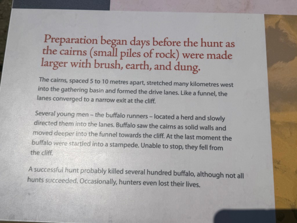 Especially interesting was a video of how the Native Americans lured, steered and scared the buffalo into a stampede and over the cliff – thousands of years before they acquired horses.