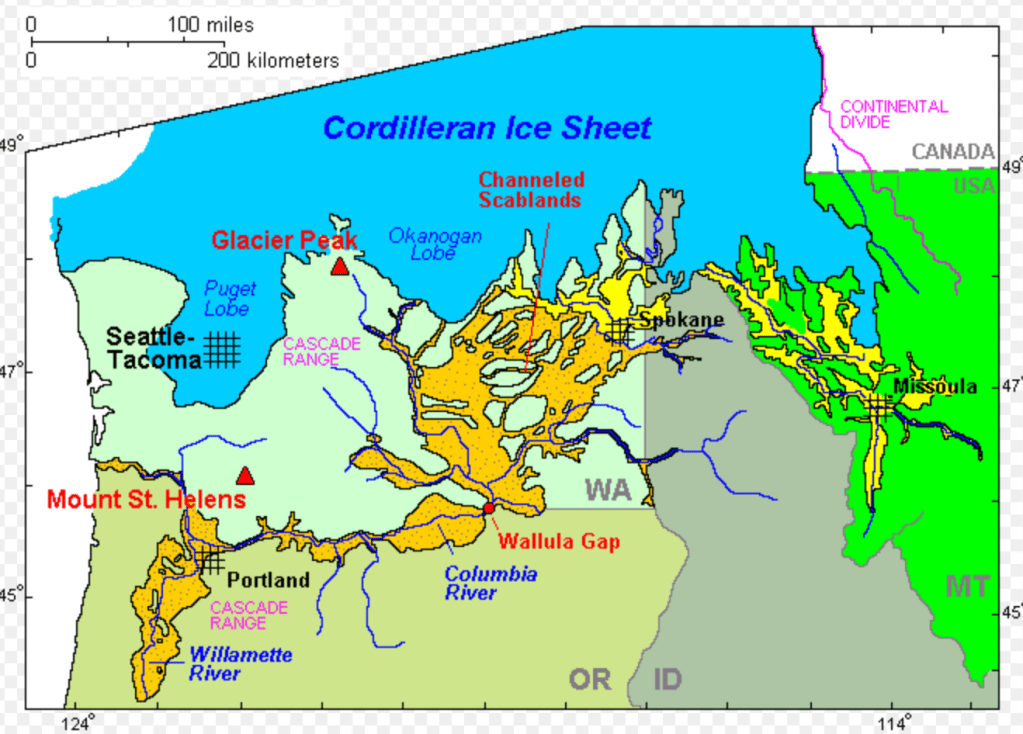 So, my followers, there was an enormous amount of water almost instantly released multiple times across eastern WA and down the Columbia River. The gravel and silt debris deposits in the Portland basin in places is over 250 feet deep and in places the silt in the Willamette Valley is over 100 feet thick.