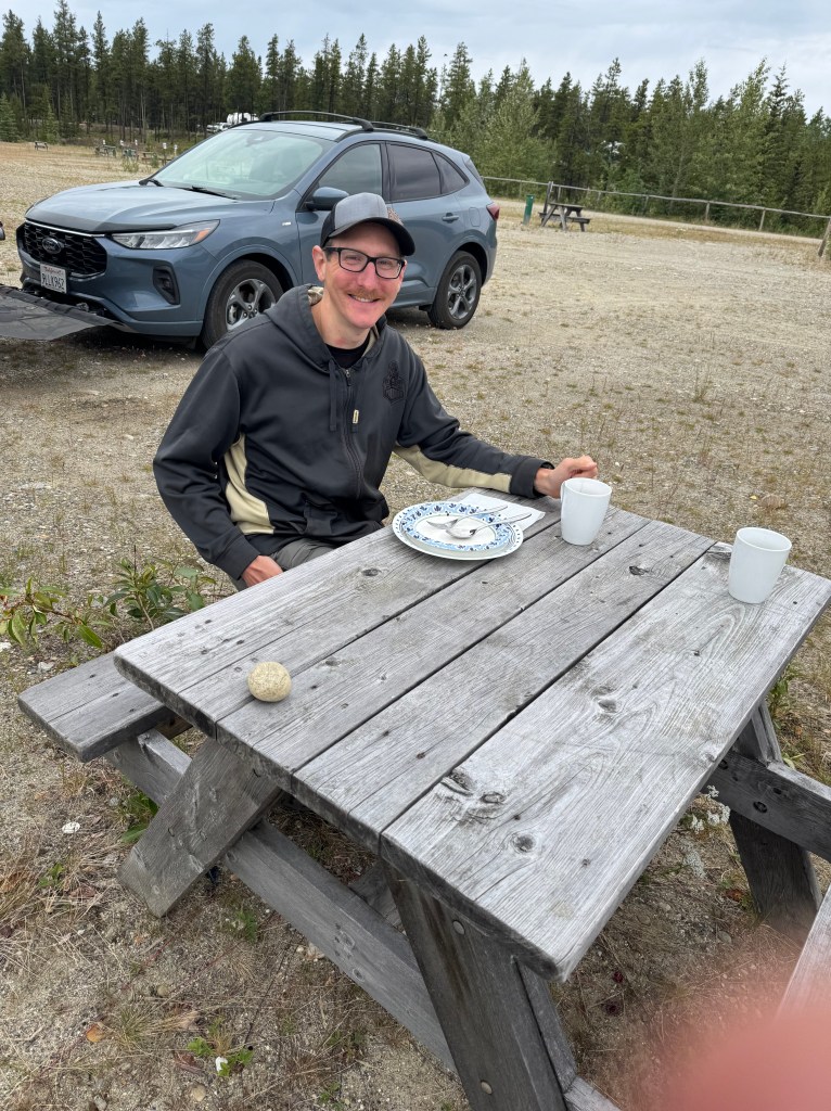 His name was Tim. He was 32, had a literature degree from Purdue and a Middle East/Greece Anthropology graduate degree from a University in England. I enjoyed conversing with him. We wished him safe travels on the rest of his journey, then we departed to Teslin.